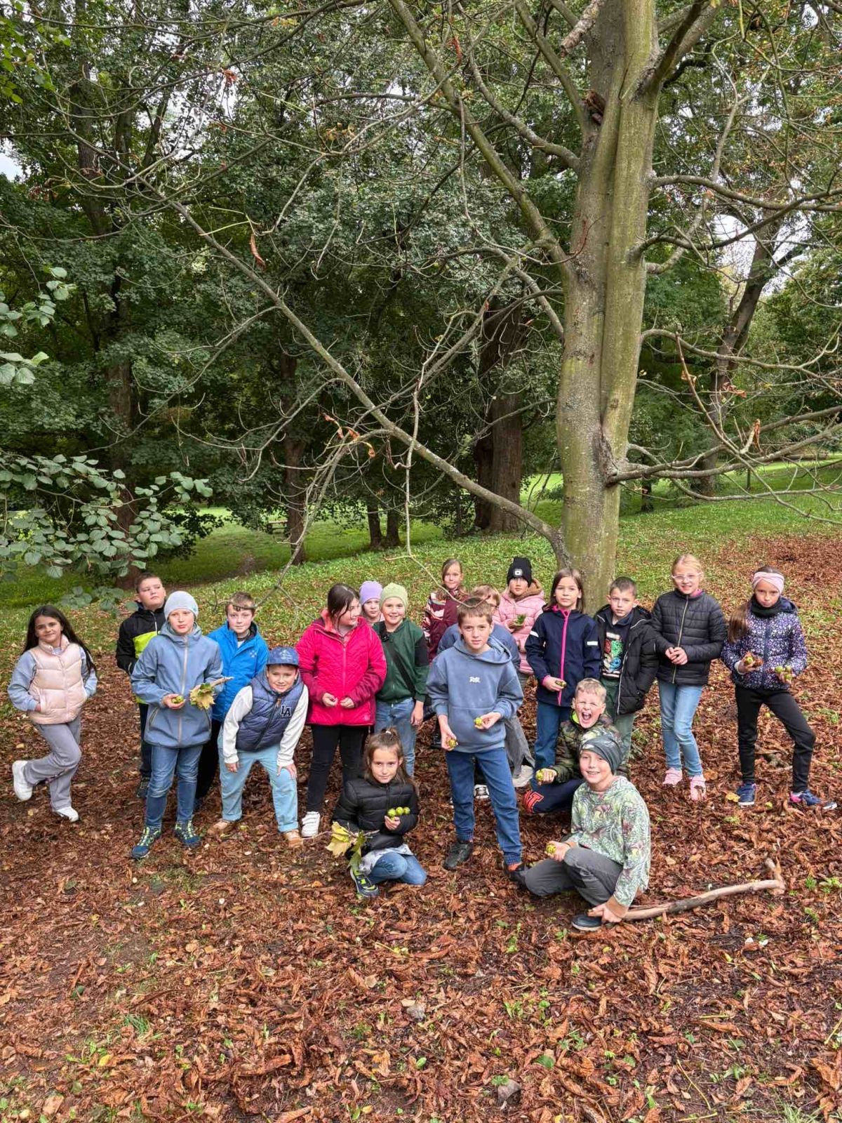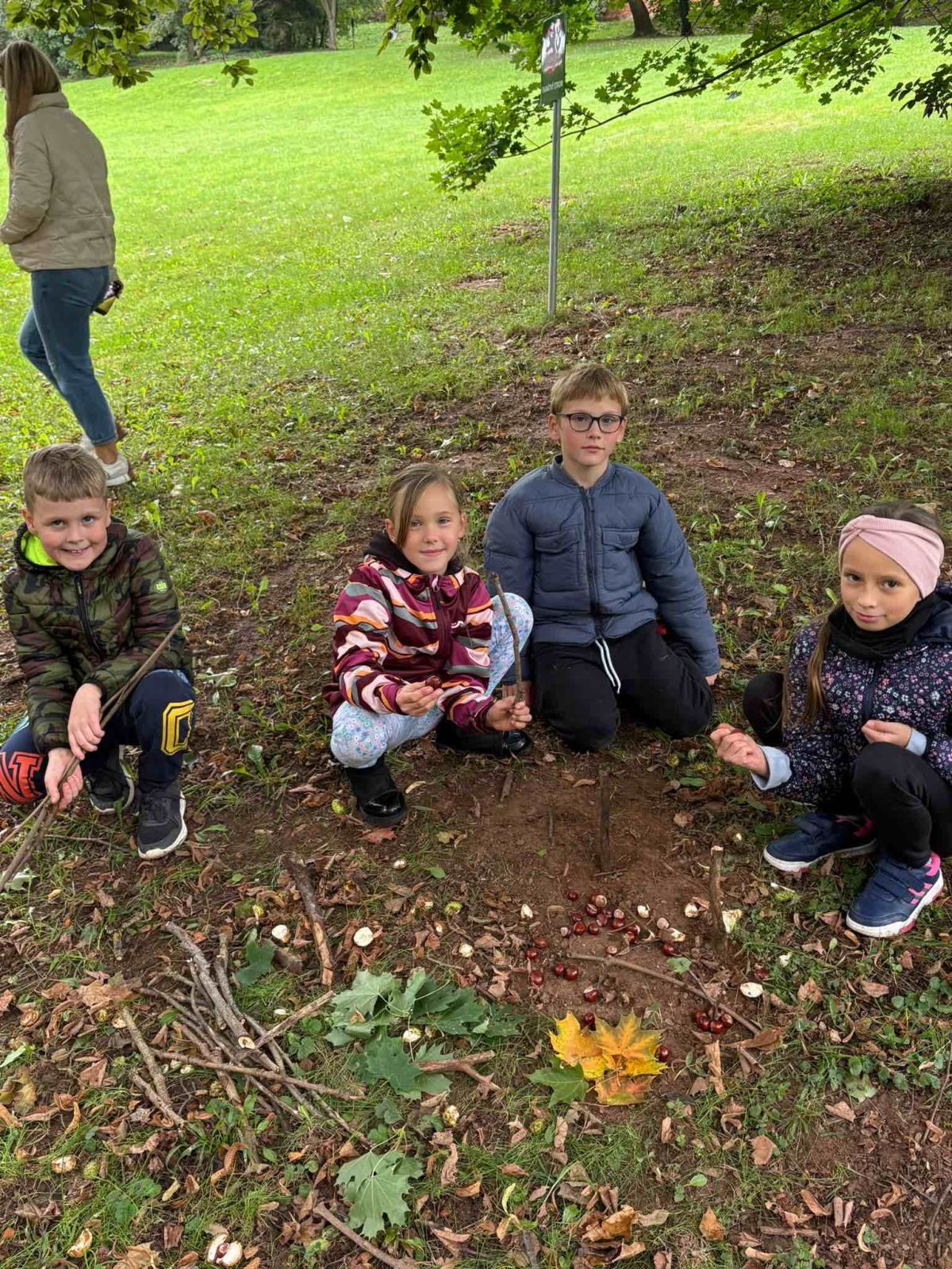 V parku jsme sbírali podzimní poklady přírody a děti pomocí své fantazie vytvořily krásné bydlení pro podzimní skřítky.