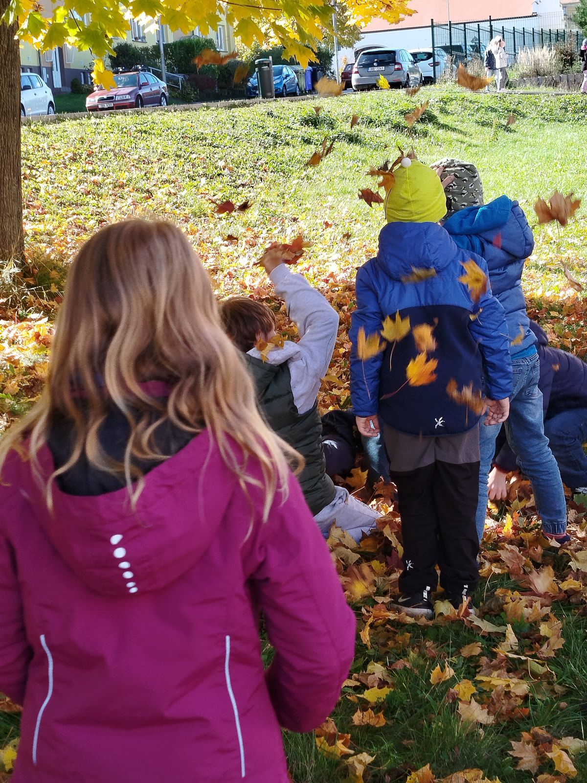 V školní družině jsme si užili podzimní odpoledne plné barev. Děti pozorovaly různobarevnost listí a povídaly si o tom, proč a jak se na podzim mění jeho barva. Společně jsme si nasbírali spadané listy v parku a využili je k tvoření – vznikly z nich veselé housenky, které nám teď zdobí družinu.