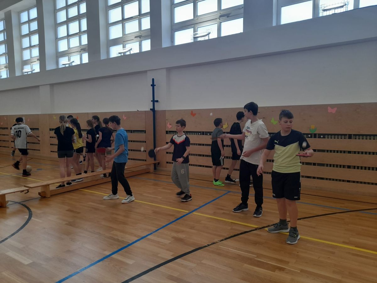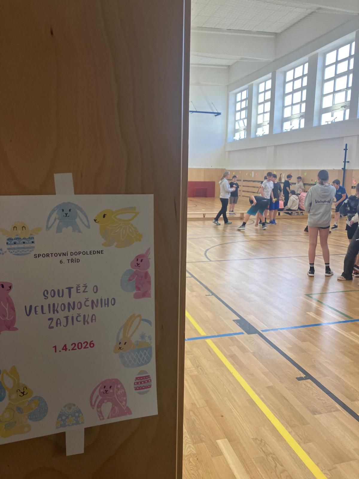 Ve středu před velikonočními svátky soutěžili žáci 6. tříd ,,O velikonočního zajíčka“. Tělocvikáři pro ně připravili stanoviště s různými disciplínami – hod na koš, kop na branku, ale i šplh a třeba počet skoků nebo angličáků za 30 sekund.